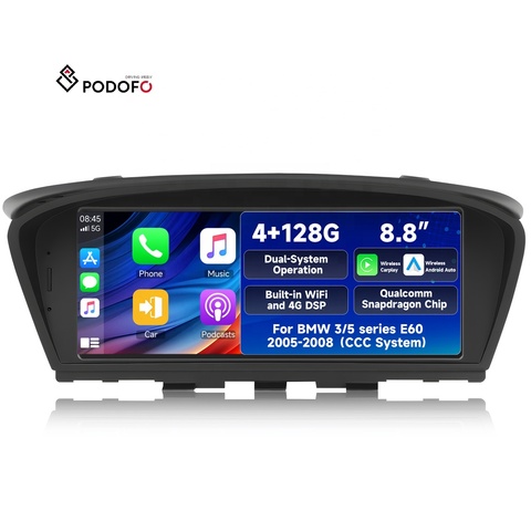 Podofo 8.8 ''8コア4 + 128GカーステレオカーラジオBMW 3/5シリーズE60 2005-2008 Carplay Android Auto WIFI & 4G GPSバルクサプライヤー