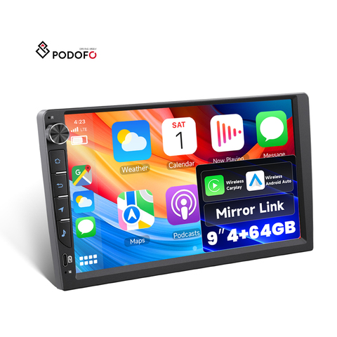 Автомагнитола Podofo 9 дюймов, 4+64 ГБ, 1 DIN, Android, с беспроводным CarPlay и Android Auto, GPS, Wi-Fi. Производитель OEM и ODM, оптовый поставщик.