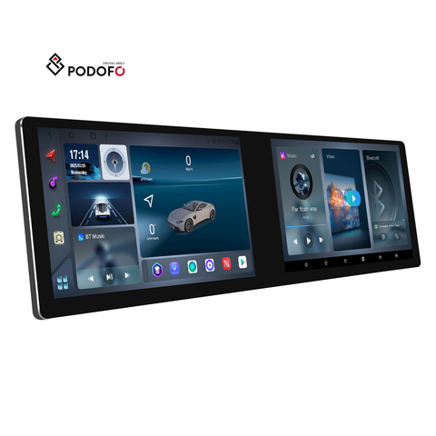 Автомагнитола Podofo с двумя экранами 10.1'' 2 DIN, Android, 4+64 ГБ, беспроводной CarPlay/Android Auto/4G WiFi, разделенный экран, оптовая продажа