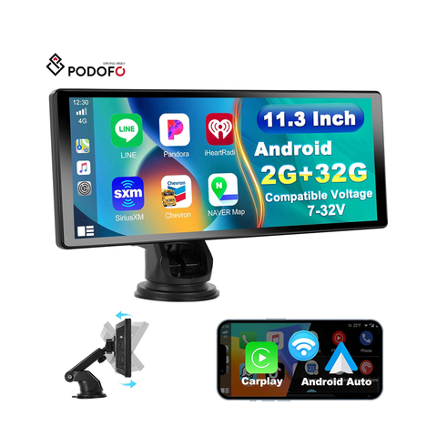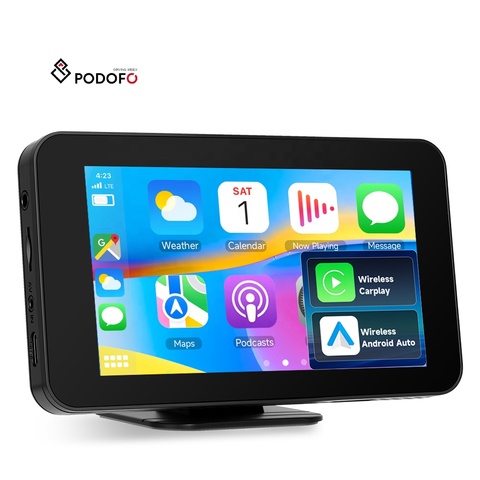Podofo 4.7 "carplay אלחוטית/אנדרואיד נייד אוטומטי כדורי מסך מגע/bt/fm/aux/q/פלט שמע/פלט שמע/התקנה קלה/oem