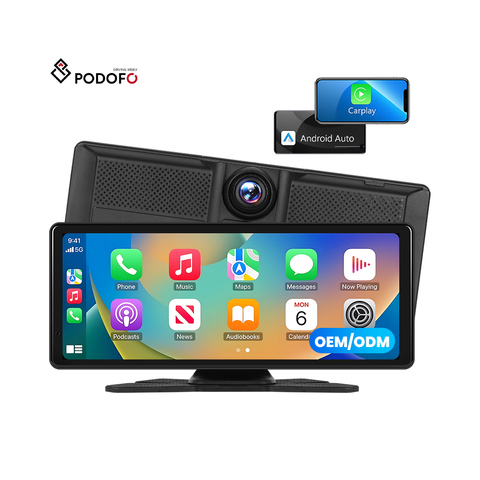 Podofo carplay אלחוטי אנדרואיד אוטומטי 8.1 "dvr מכונית צג מכונית צג רדיו חזית/מצלמות אחוריות למכוניות ואן oem